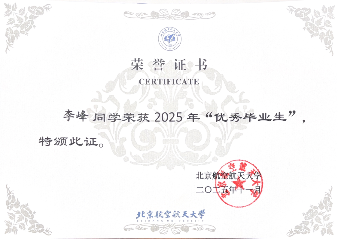 北京航空航天大学2025年“优秀毕业生”荣誉称号