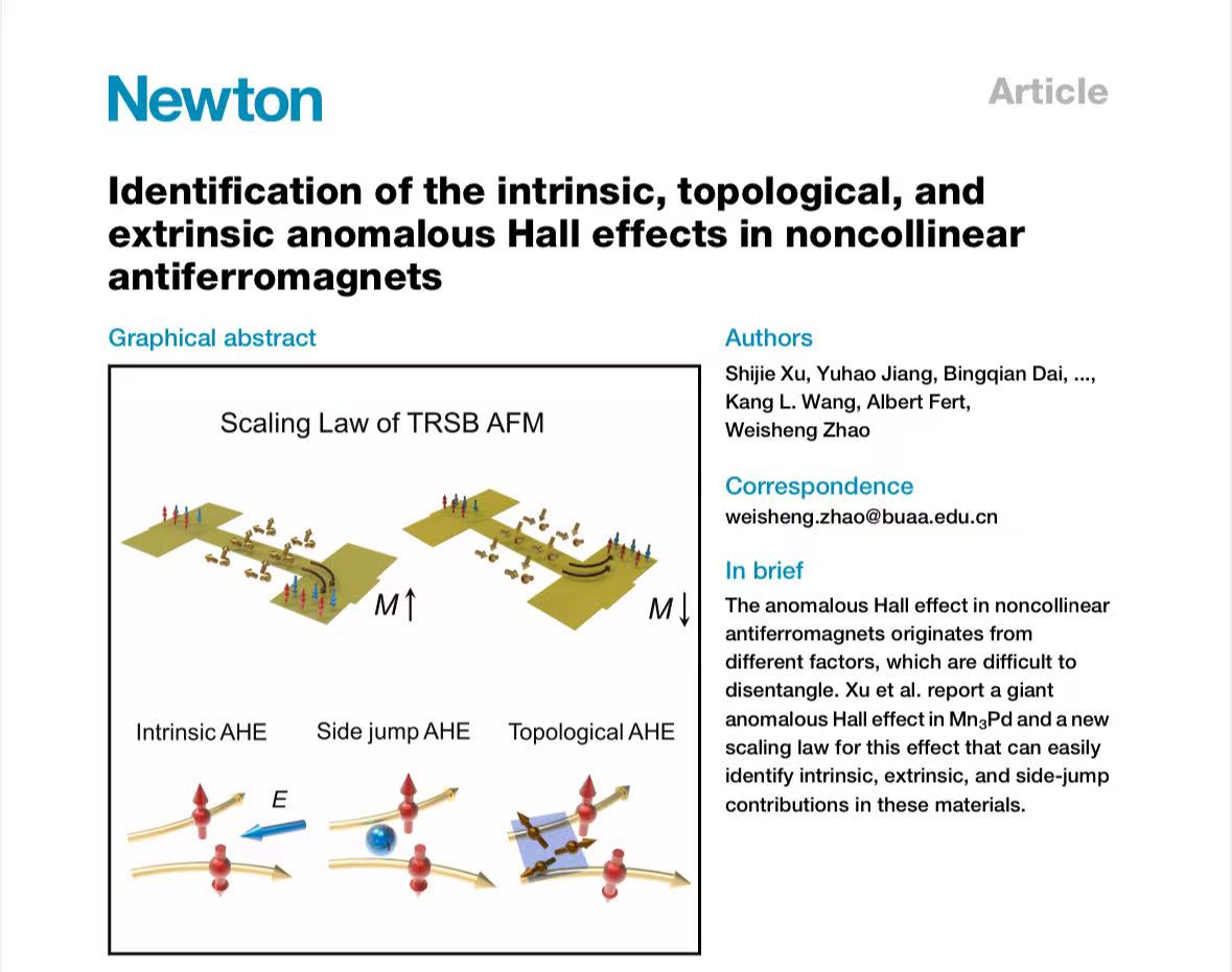 Xu S, Jiang Y, Dai B, Ma Y, Liu C, Zhang X, Wang KL, Fert A, Zhao W. Identification of the intrinsic, topological, and extrinsic anomalous Hall effects in noncollinear antiferromagnets. Newton. 2025 May 5;1(3).